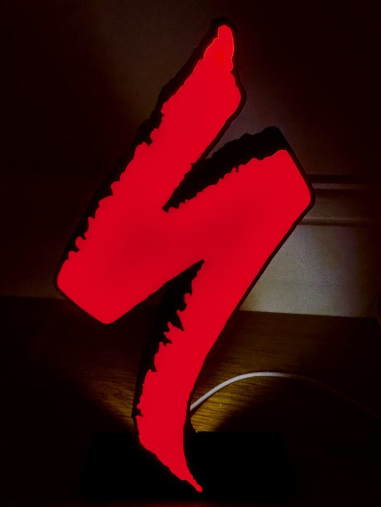 Minimalist, bold, and instantly recognisable—the Specialized “S” logo light is a glowing tribute to one of cycling’s most iconic symbols. Designed for UK riders, shops, and studios, this illuminated piece adds a modern edge to any cycling-themed space.